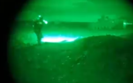 Zu sehen ist die ukrainische Besatzung eines “HMMWV”-(Humvee)-Schützenpanzers in Kampfhandlungen. Dann fährt das Fahrzeug auf eine Mine, und dessen Inneres geht in Flammen auf. Die Mannschaft scheint aber entkommen zu sein.