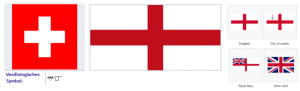 Fahnen: Schweiz, Genua, England, City of London, der Royal Navy und Union Jack Quelle: UnknownVector:User:Marc MongenetCredits:User:-xfi-User:Zscout370, Public domain, via Wikimedia Commons Quelle: commons.wikimedia.org/wiki/File:Flag_of_Genoa.svg Quelle: traditional Vector: Nicholas Shanks, Public domain, via Wikimedia Commons Quelle: Greentubing, Public domain, via Wikimedia Commons Quelle: Original code by Stefan-Xp with modifications to ratio by Yaddah., Public domain, via Wikimedia Commons