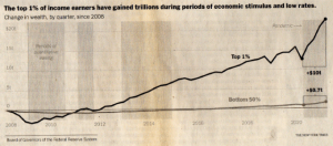 Vermögenszuwachs in USA: Reichsten 1% – schwarze Linie, untere 50% – in grau | Quelle: NYT Screen Shot