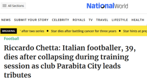 Riccardo Chetta (39†): Der 39-jährige italienische Fußballspieler stirbt nach einem Zusammenbruch während des Trainings, sein Verein Parabita City würdigt ihn mit einer Gedenkfeier.