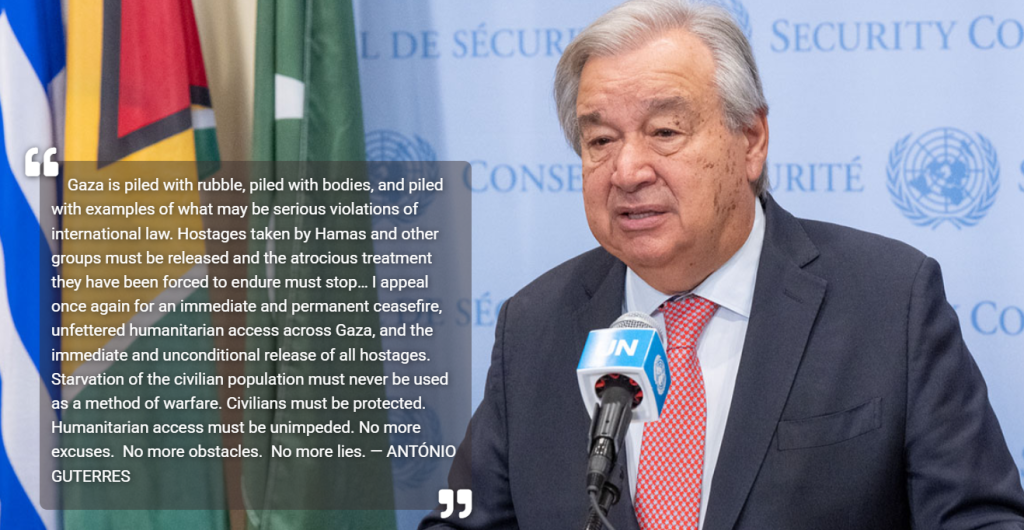Ponownie apeluję o natychmiastowe i trwałe zawieszenie broni, nieograniczony dostęp humanitarny do Gazy oraz natychmiastowe i bezwarunkowe uwolnienie wszystkich zakładników.