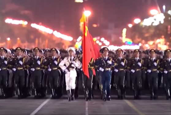 – Trzecia to flaga Ludowej Armii Wyzwolenia Chin z złotą gwiazdą i napisami oznaczającymi datę 1.8.1927. W tym dniu została założona Czerwona Armia Komunistów, która, według słów Mao Zedonga, „zdobyła władzę za pomocą broni”. Xi Jinping stał w milczeniu przed trzema symbolami dzisiejszego Państwa Środka: