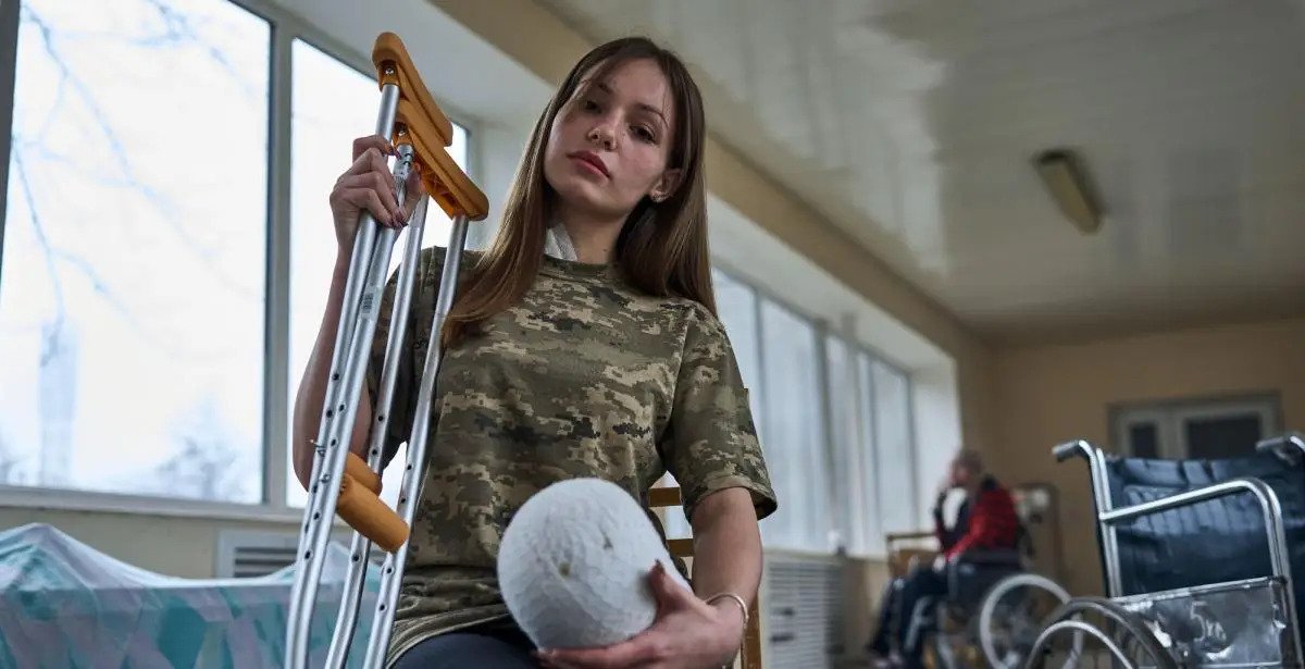 junge beinamputierte ukrainische Kriegsheldin