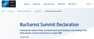 Punkt 23 und 24 der NATO-Erklärung zum Bukarest Gipfel, welche NATO offiziell nur auf Englisch und Französisch veröffentlichen ließ, denn die deutsche Bevölkerung soll das nicht wissen, nachstehend auf Deutsch: