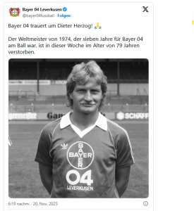 Der deutsche Fußball trauert um einen Weltmeister von 1974! Dieter Herzog ist in dieser Woche im Alter von 79 Jahren verstorben.