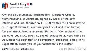 Trump erklärt alle Autopen Executive Orders von Biden für ungültig