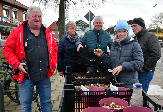 Als Zeichen gegen Rechts werden bunte Blumenzwiebeln während der Hatter Weihnachtsmärkte verteilt. Fotoquelle: NWZ online