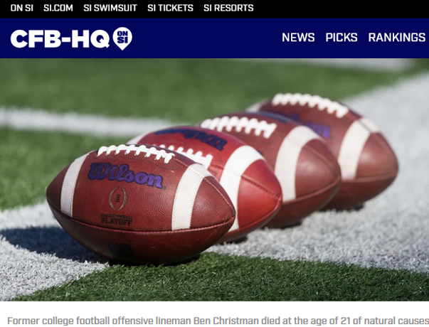 Christman grał w futbol amerykański przez dwa lata na Ohio State University, zanim w 2023 roku przeniósł się do Kentucky, gdzie ukończył studia z wyróżnieniem. Ostatnio grał jako student na Uniwersytecie Nevadzie w Las Vegas na początku tej zimy. Zmarł w dzień przed swoimi 22. urodzinami.