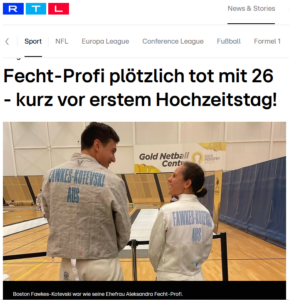 Sportowcy i rodzina w szoku: Profesjonalny szermierz umiera w wieku 26 lat