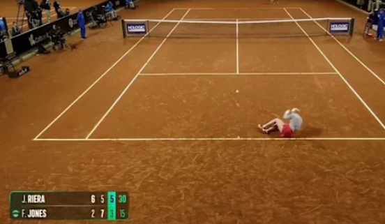 Pomoc medyczna natychmiast przybyła na kort, a Jones została zniesiona na wózku inwalidzkim i musiała zrezygnować z meczu.