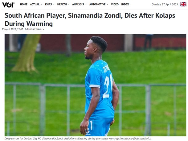 JAKARTA – Południowoafrykański piłkarz Sinamandla Zondi z klubu Durban City FC (National First Division/Mistrzostwa Południowej Afryki) nagle i niespodziewanie zmarł we wtorek, 22 kwietnia 2025 roku, po upadku podczas rozgrzewki przed meczem.