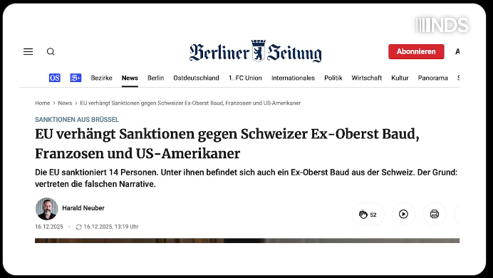 Podobnie jak Baud, dziennikarze Alina Lipp i Thomas Röper (autor Anti-Spiegel) mieszkający obecnie w Rosji, zostali ukarani sankcjami. Dodatkowo znany podcaster Flavio von Witzleben został ukarany blokadą konta, o czym informował UNSER MITTELEUROPA, najprawdopodobniej dlatego, że co tydzień prowadzi około godzinny podcast z różnymi „niewygodnymi” osobami, w tym z byłłą austriacką minister spraw zagranicznych Karin Kneissl. Ta ostatnia jest w UE persona non grata, ponieważ osobiście zna Władimira Putina. Putin nawet osobiście uczestniczył w jej weselu w Styrii. Kneissl została przez to objęta sankcjami na mocy decyzji UE (wraz z Gerhardem Schröderem).