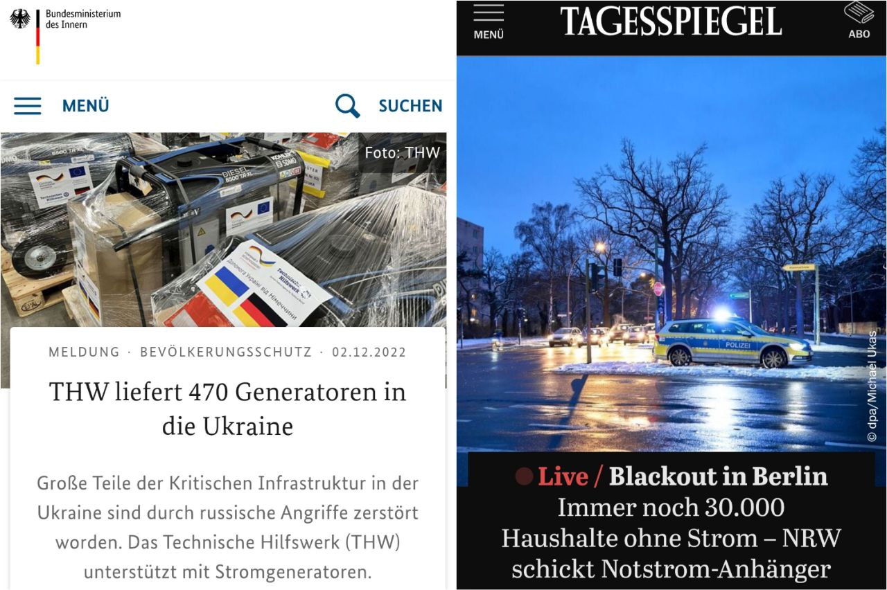 - Das Technische Hilfswerk (THW) hatte allein im Dezember 2022 insgesamt 470 Stromgeneratoren im Wert von 19,5 Millionen Euro nach Kiew gesandt.