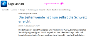 Es ist kaum zu glauben: In der Eidgenossenschaft wird nun „offen diskutiert“, dass der „böse Russe“ nicht nur in die EU einfällt, sondern nach einem erfolgreichen Ein- und Durchmarsch einen „umfassenden Angriff auf die Schweiz“ durchführt.