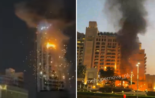 Ein anderes Video soll einen Anschlag auf das Luxushotel Fairmont – The Palm auf der künstlichen Palmeninsel Jumeirah zeigen. Auf den Aufnahmen ist zu sehen, wie das Hotel in Flammen steht, nachdem es wohl von einem Geschoss aus der Luft getroffen worden war.