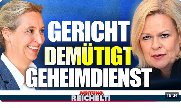 Würden sie damit durchkommen, wäre das nicht weniger als ein Staatsstreich und das Ende der Demokratie in Deutschland. Das Verwaltungsgericht Köln hat nun entschieden, dass das sogenannte Faeser-Gutachten erst einmal nicht ausreicht, um die AfD als „gesichert rechtsextrem“ einzustufen oder sie auch nur so zu bezeichnen. Alle Details zu dem spektakulären Putsch-Versuch von Faeser und dem Geheimdienst erfahren Sie bei „Achtung, Reichelt!“.