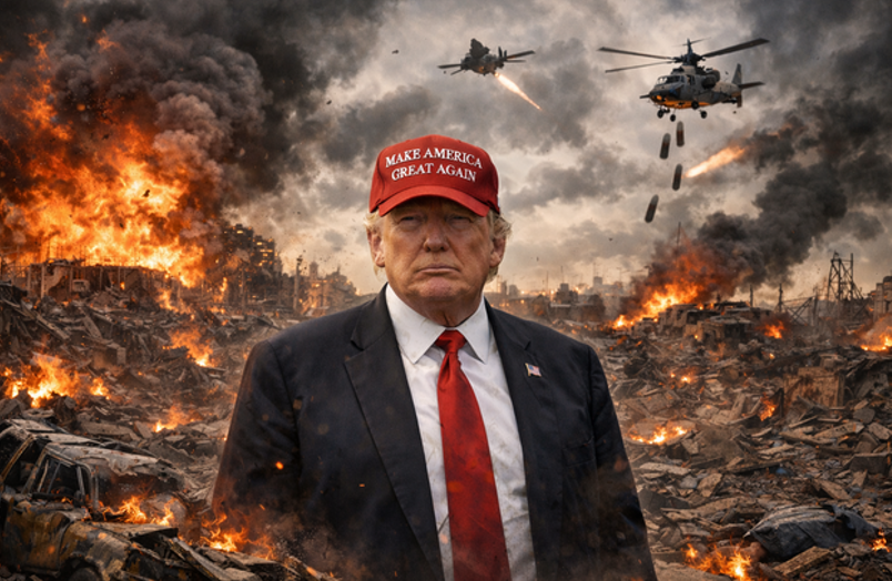 Sein Schlagwort „Make America Great Again“ bezog sich nicht, wie viele glaubten (unter anderem auch der Autor dieser Zeilen) auf eine Gesundung der amerikanischen Wirtschaft, durch Reduktion der amerikanischen Schulden, oder Bürokratieabbau, sondern darauf die gesamte Welt durch martialisches, belligerentes Auftreten einzuschüchtern und zu terrorisieren.