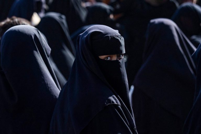 Al-Hol, sierpień 2025: Kobiety w pełnej zasłonie przed powrotem do Iraku – oboz był przez lata uważany za gniazdo radykalnych sieci.
