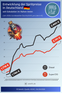 Wir haben die Entwicklung der Spritpreise in Deutschland seit Beginn der neuen Nahost-Konflikts in der folgenden Infografik veranschaulicht.