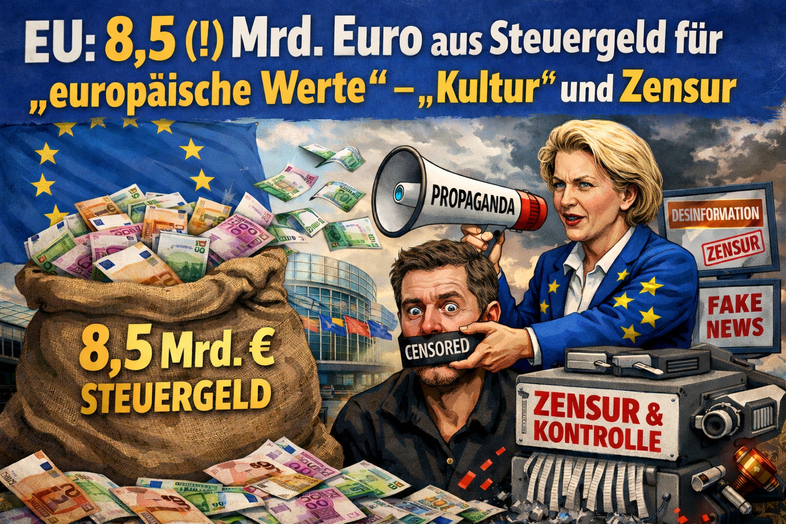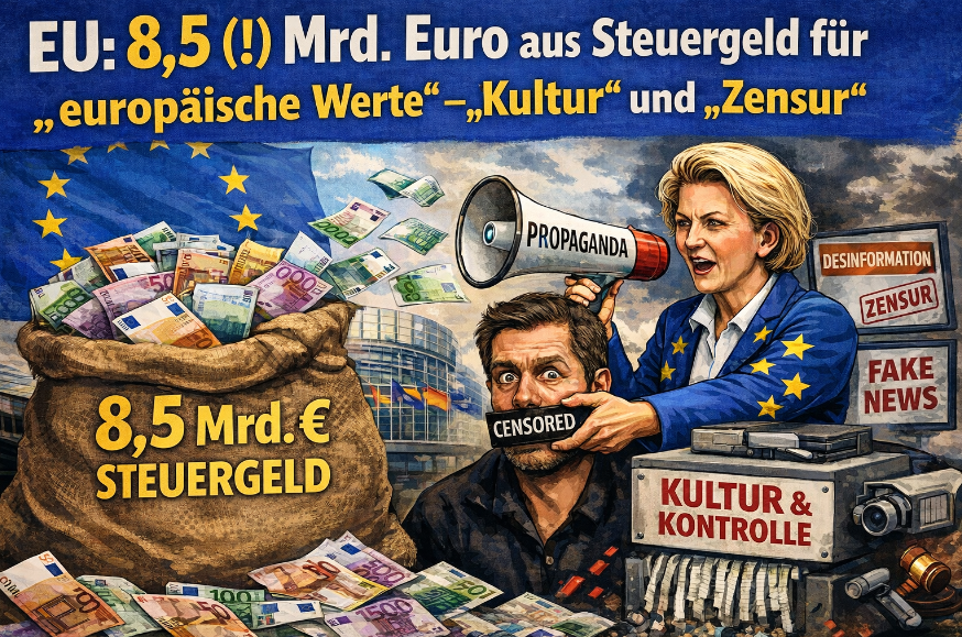 Die EU entwickelt sich zusehends zur Gesinnungsdiktatur samt Überwachungsapparat mit „Förderprogrammen“ erwünschter Initiativen bei gleichzeitigen Zensur- oder Sanktionsbestrebungen gegen unliebsame Personen oder Medien.