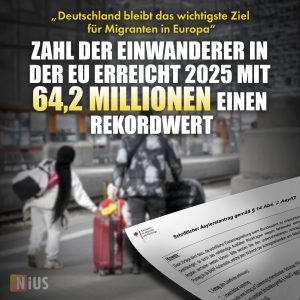 Die Zahl der in der Europäischen Union lebenden Einwanderer ist im Jahr 2025 auf einen Rekordwert von 64,2 Millionen gestiegen – etwa 2,1 Millionen mehr als ein Jahr zuvor.